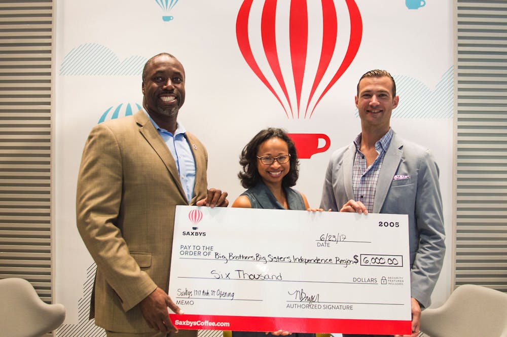Last week, Saxbys CEO Nick Bayer joined Wilson-Scott to present the check to BBBS Independence Region CEO Marcus Allen at the 1717 Arch cafe.