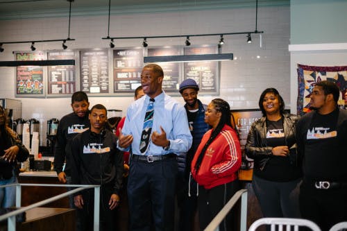 We chatted with Monay, Mural Arts Restorative Justice Program Director Robyn Buseman, and Mural Arts Manager of Individual and Corporate Giving Naima Murphy about the exhibit and what’s up next for Saxbys and Mural Arts.