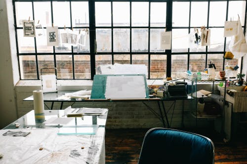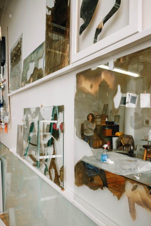 If you’ve stopped by Saxbys 11th & Locust lately, chances are you immediately spotted Laura Sallade’s stunning artwork on our walls. As huge fans of her work ourselves, we jumped at the chance to visit her North Philly studio, which is neatly divided into a workshop for her impressive silver nitrate pieces and a light-filled studio for her works on paper. It’s part science lab, too — Laura experiments with mylar, glass, and silver nitrate to achieve specific shapes and patterns. “If you’ve been working for awhile, you develop a language of your own and can translate it into different materials,” Laura explained. Keep scrolling for a peek at what goes into each piece, plus the scoop on Laura’s fave Philly neighborhoods and how she takes her coffee (obviously, we had to ask).